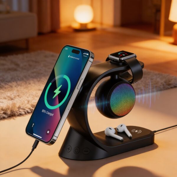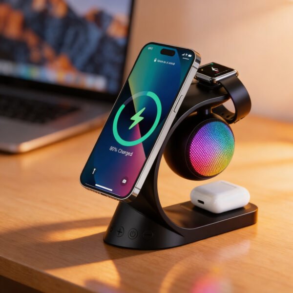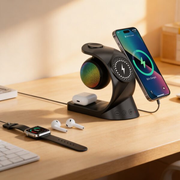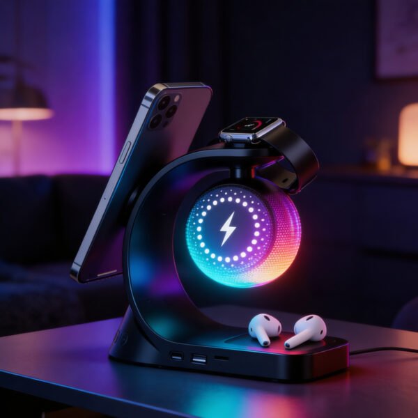 1× شاحن ذكي 5 في 1 مع مكبر صوت وكرة إضاءة