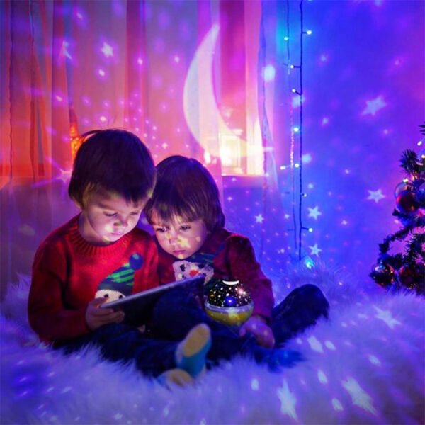 – تقدر تختار بين ضوء ثابت للليل أو مصباح قمر ونجم يدور عشان يضيف لمسة ساحرة لغرفتك.